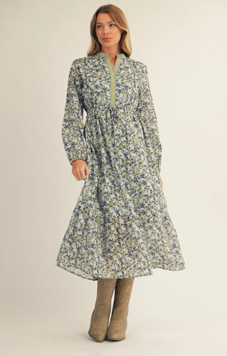 Navy and Cream Floral Midi