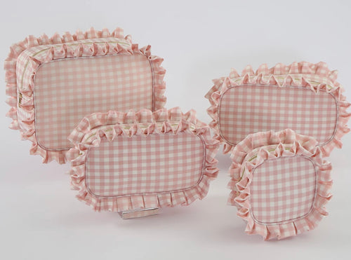 Medium Gingham Ruffle Cosmetic Bag