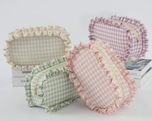 Extra Large Gingham Ruffle Cosmetic Bag