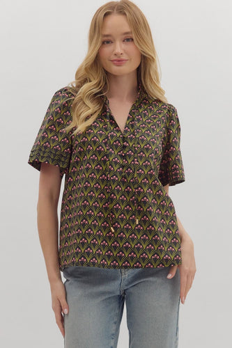 Black Art Deco Print Top