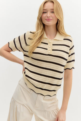 Cream Short Sleeve Sweater