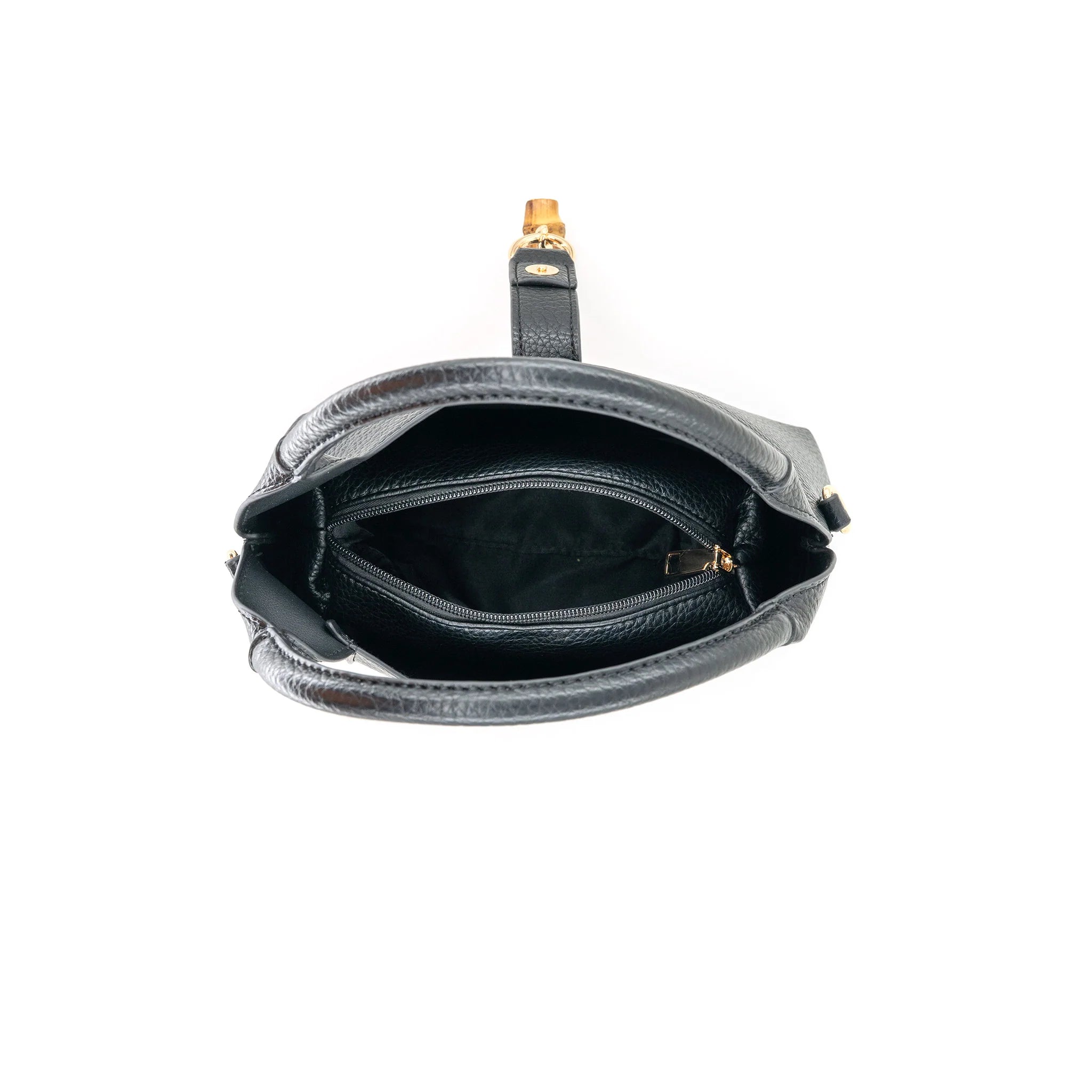 Milan bag with cute bamboo accents on the latch. This bag includes a makeup pouch inside plus an additional strap for other wearing options.