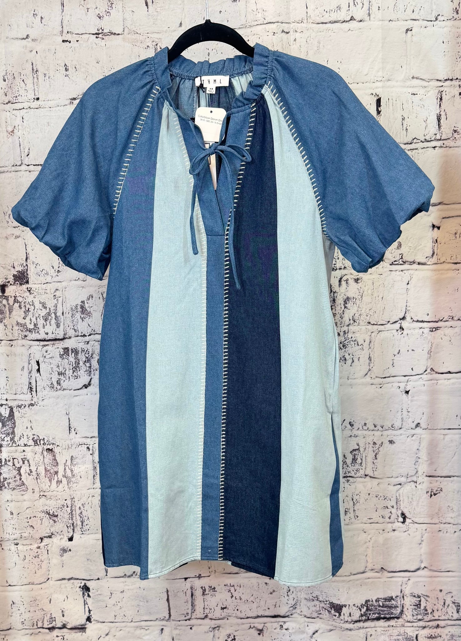 Adorable! This denim dress has you covered for the fall craze for sure. It features stitched trim for the perfect added touch.