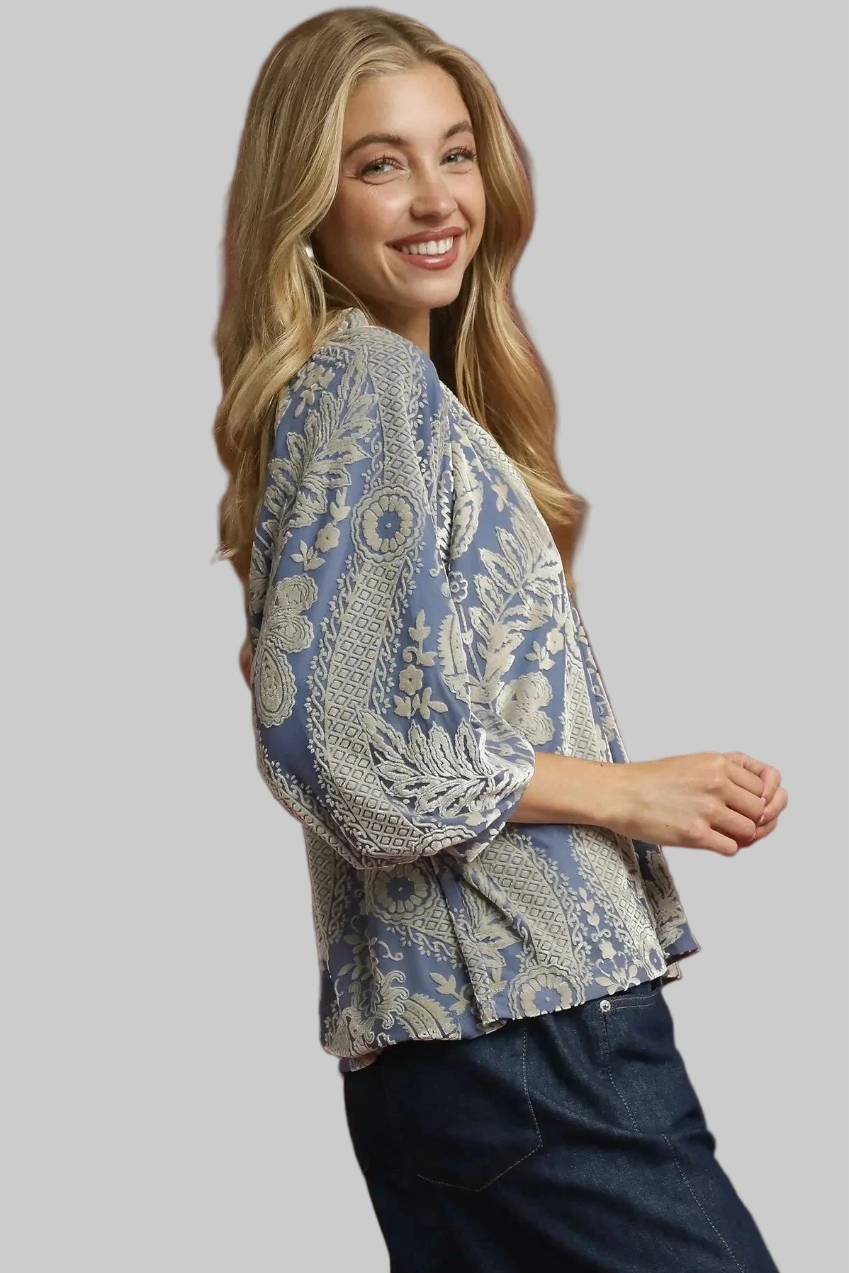 The cutest! This soft textured velvet blend offers a split V-neck and raglan 3/4 length. Lined.