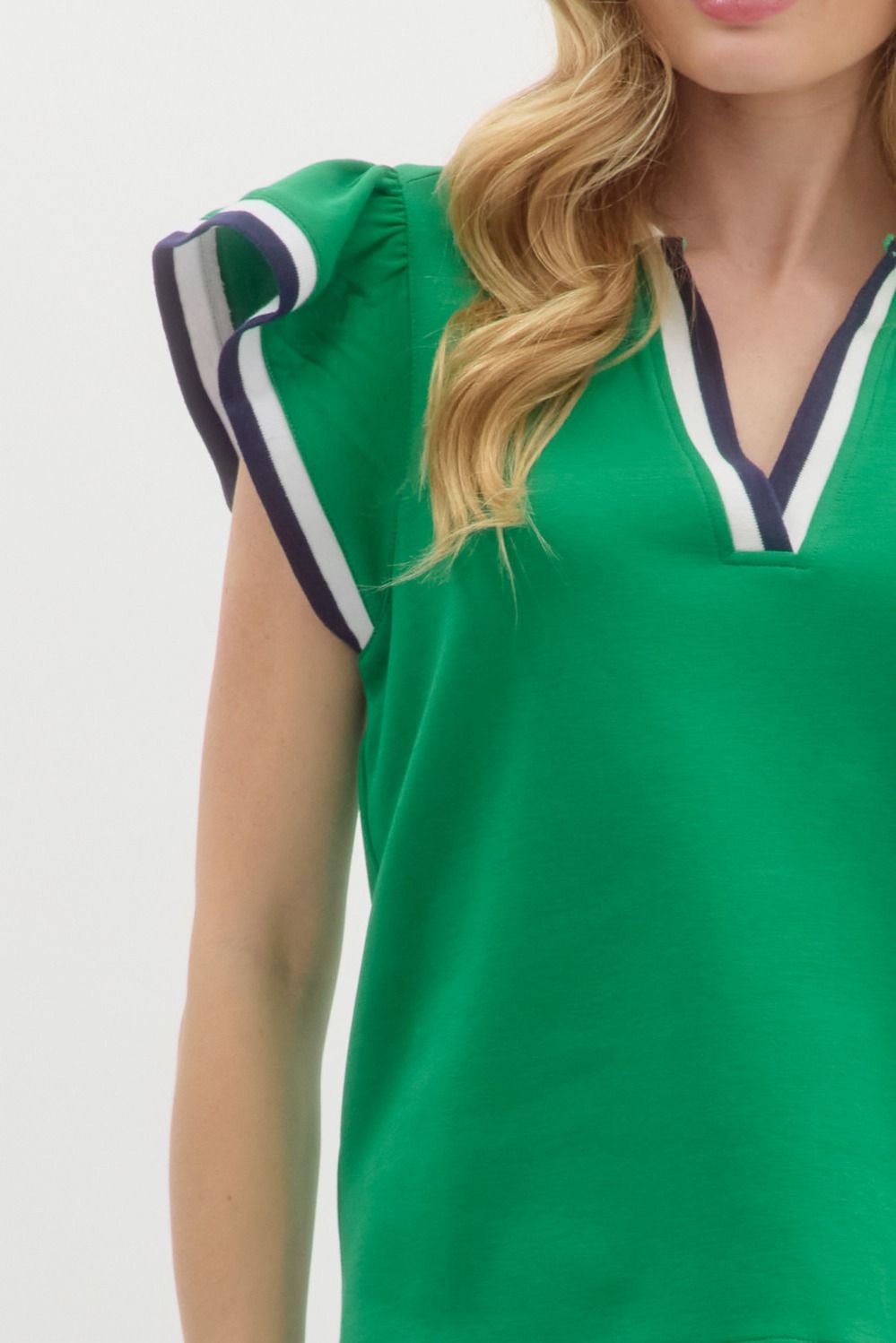 What a cute set!!! This solid green top and skirt set are a must. This set features multi-colored band accents and pockets at sides of skirt. Unlined. Knit. Non-sheer. Lightweight.